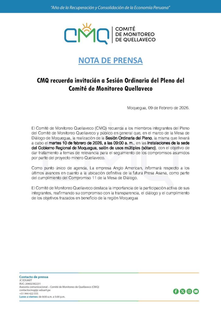 Desde el Comité de Monitoreo (CMQ) verificamos, informamos y actuamos para que cada compromiso se cumpla de forma efectiva, con participación de autoridades, sociedad civil y comunidad.