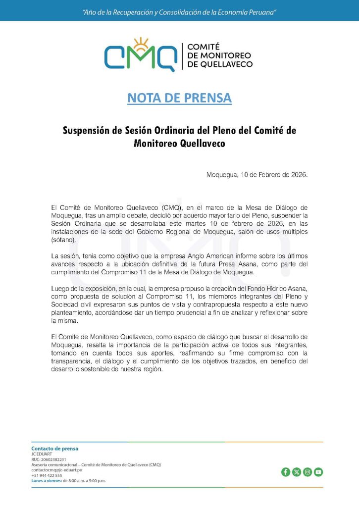 Anglo American Quellaveco asumió 26 compromisos clave durante la Mesa de Diálogo con la región Moquegua. Estos acuerdos fueron construidos con participación ciudadana y son el corazón de la vigilancia social y el diálogo transparente.